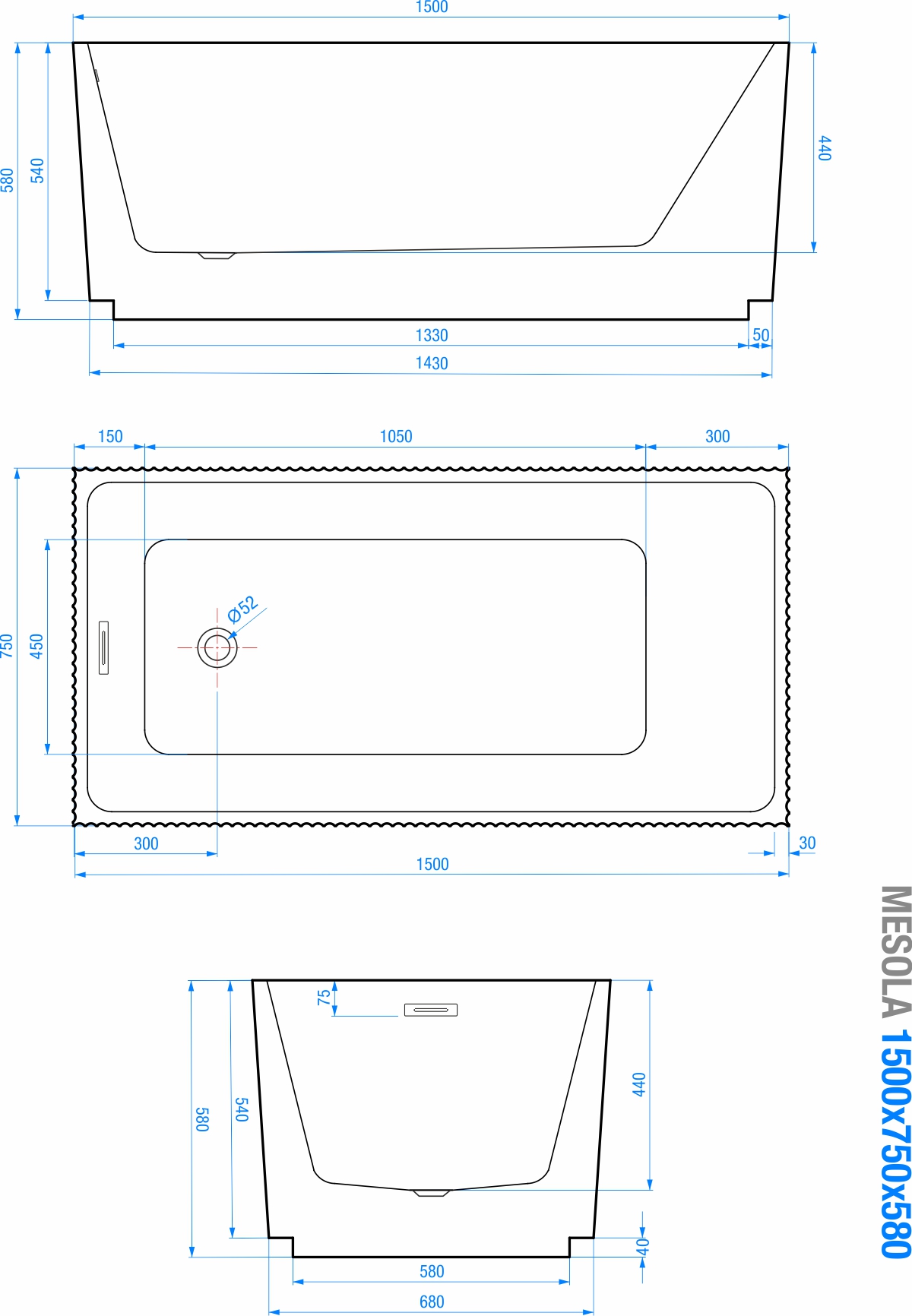 Bathroom with a freestanding bathtub MESOLA 150x75 cm Mon-Fri ----------------------- 8am - 4pm