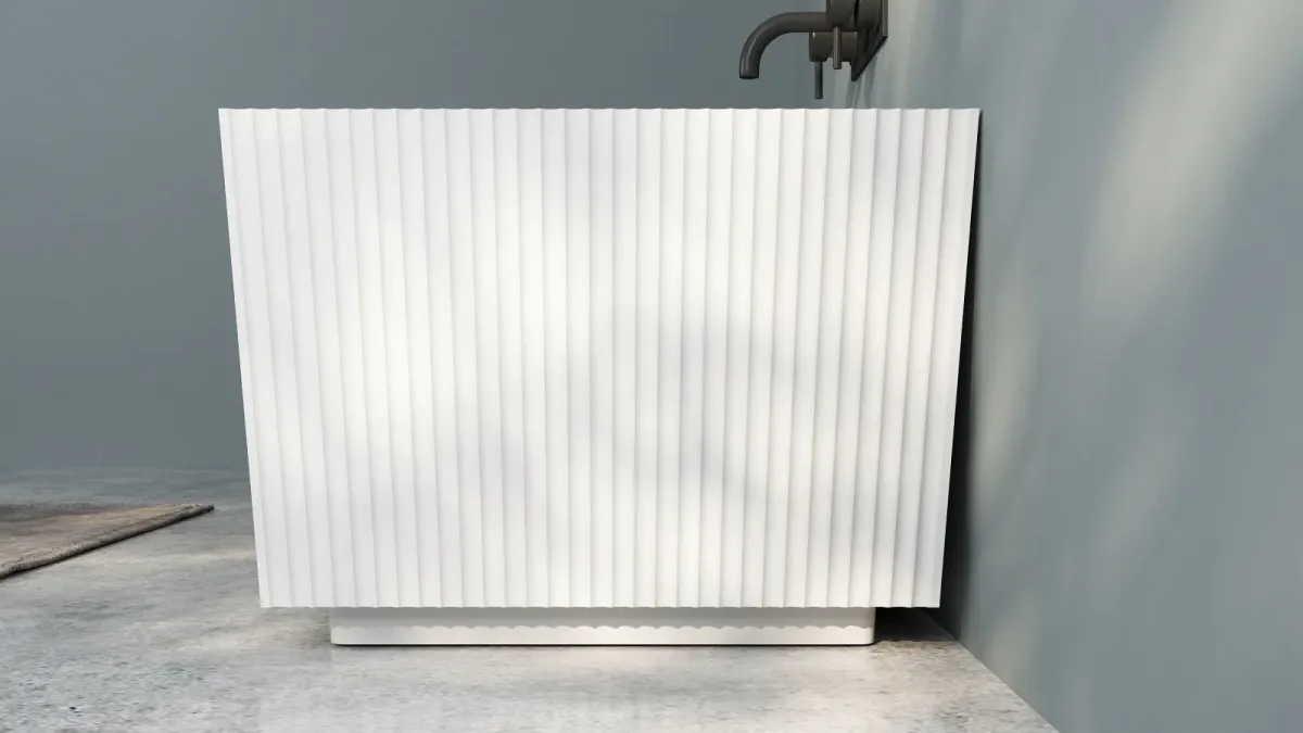 The bathtub is made of high-quality sanitary acrylic, resistant to scratches and discoloration. The smooth surface facilitates cleaning and hygiene, which is especially important in everyday use. All bathtubs in this series are equipped with an overflow, protecting against accidental overflows. The set also includes a drain with a chrome-plated click-clack brass stopper and a siphon. If you're looking for a solution that combines design, comfort, and durability, this designer, grooved freestanding bathtub is a perfect choice for an elegant, modern bathroom.