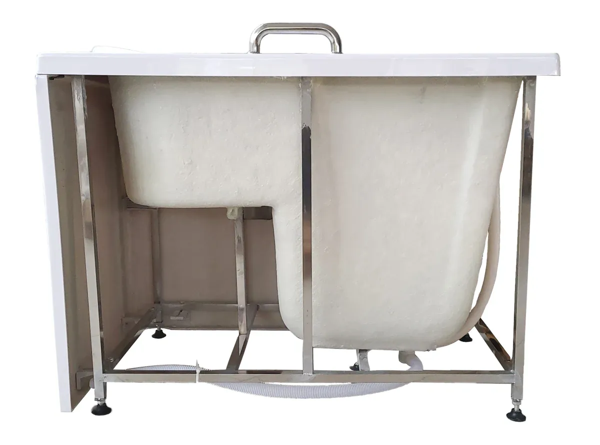 Small MEDICA walk-in tub with openable door in size 100x68 cm (right version) is a dedicated bathtub for people with disabilities or mobility limitations, for whom entering a standard regular bathtub may be a big problem or even impossible. This model of tilting bathtub enables comfortable bathing for such people in a sitting position (the bathtub has a wide built-in seat). Bathtubs for the disabled are our solution to the problems such people have with simple everyday activities, including hygiene. When designing this model, we made sure that entering the bathtub for the disabled was easy and safe. The advantage of this open bathtub is also a wide door made of tempered glass, which allows a disabled person to enter it quickly and safely, directly from a wheelchair, without the help of household members. Bathtub with door and seat MEDICA is also equipped with bathtub handle, which additionally increases the safety of a disabled person entering bathtub with opening door. Tub with doors for the disabled MEDICA is made of high quality materials (sanitary acrylic), the body of this bathtub with an opening side is mounted on a spatial frame made of stainless steel - emphasizing the quality of this walk-in bathtubs with doors is covered by a 5-year warranty, provided upon purchase.