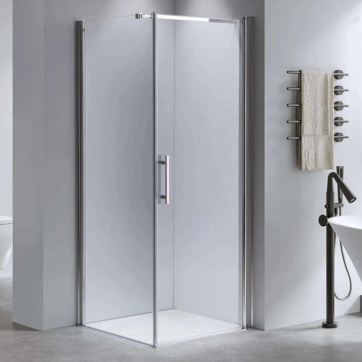 Modern, high-quality SELMA square shower enclosure in 90x90 cm - designed for corner installation. The 90x90x190 cm tilting shower is the perfect choice for those who value quality, comfort, and modern design. The shower enclosure elements are made of 6 mm thick transparent tempered glass and chrome aluminum profiles. The SELMA bathroom enclosure can be mounted on a shower tray or directly on the floor (linear drain). The 900x900 mm corner shower enclosure with a tilting door is perfect for bathrooms with limited space. Thanks to its square shape, it fits perfectly into a bathroom corner, optimizing available space. The shower enclosure features universal installation, allowing the door to be mounted on the left or right. The door opening/closing system is based on chrome-plated hinges and magnetic seals. The set includes all the necessary components for installation: profiles, hinges, a stainless steel top bracket, a set of seals, and instructions. Installation is simple and intuitive.