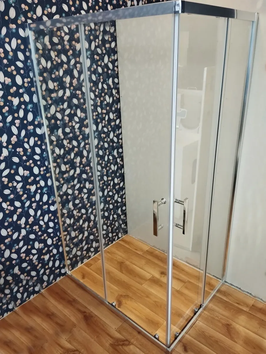 Wysokiej jakości prostokątna kabina prysznicowa MEXO w rozmiarze 800x1100 mm - dedykowana do montażu narożnego. Elementy kabiny wykonana ze szkła hartowanego transparentnego o grubości 6 mm, profile aluminiowe wykończenie chrom połysk. Kabina natryskowa MEXO może być montowana na brodziku lub bezpośrednio na posadzce. Kabina prysznicowa typu przesuwnego - podwójne drzwi kabiny prysznicowej przesuwają się na rolkach, w konstrukcji zastosowano system rolek jezdnych z możliwością łatwego i szybkiego wypięcia szyby jezdnej (np. w celu wyczyszczenia powierzchni produktu). Kabina prysznicowa posiada regulację szerokości i długości (szczegóły w załączonym rysunku technicznym).