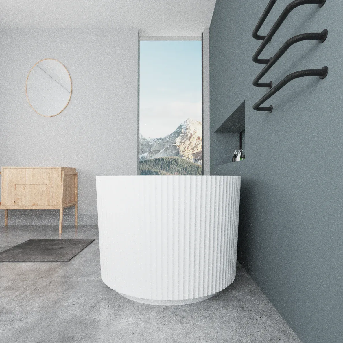 Produkt dla osób ceniących prostotę formy, porywający swoją nienaganną estetyką. Wanna wolnostojąca w prążki zyskuje zwolenników dzięki prostej, zachowawczej linii produktu o wyjątkowym ryflowanym kształcie. Klienci, którzy wybrali tą wannę wolnostojącą do swojej łazienki cenią ją za oryginalny design oraz świetne wyprofilowanie. Kąpiel w takiej nowoczesnej wannie ma być czystą przyjemnością! Ta owalna ryflowana wanna wolnostojąca będzie świetnym elementem zarówno wnętrz klasycznych, stylizowanych na salony kąpielowe retro, jak i tych minimalistycznych, ultranowoczesnych łazienek, wyjętych wprost z najbardziej prestiżowych pism wnętrzarskich. Dodatkowo opcja dowolnego wręcz ustawienia wanny we wnętrzu sprawia, że będzie ona centralnym elementem tego pomieszczenia, bez względu na to, czy zostanie postawiona przy ścianie czy centralnie, na środku.