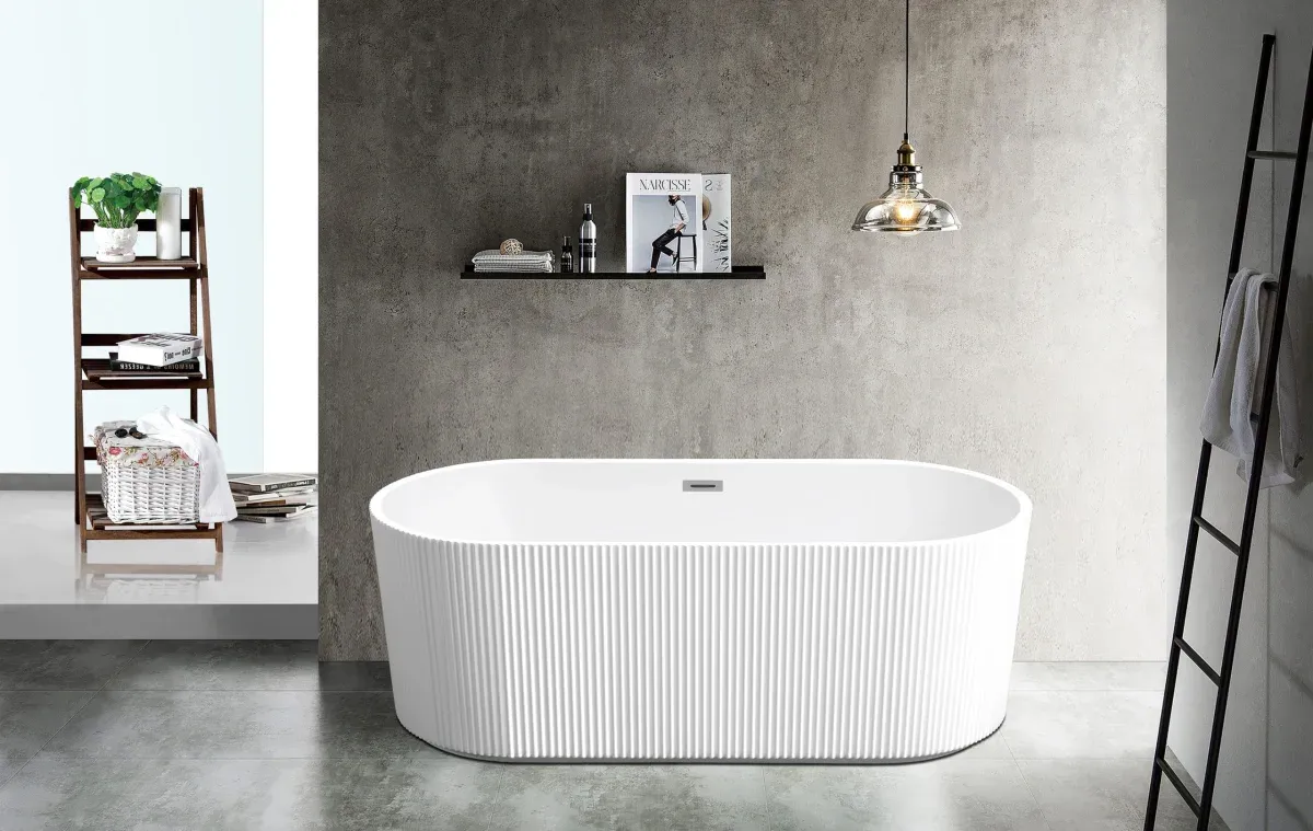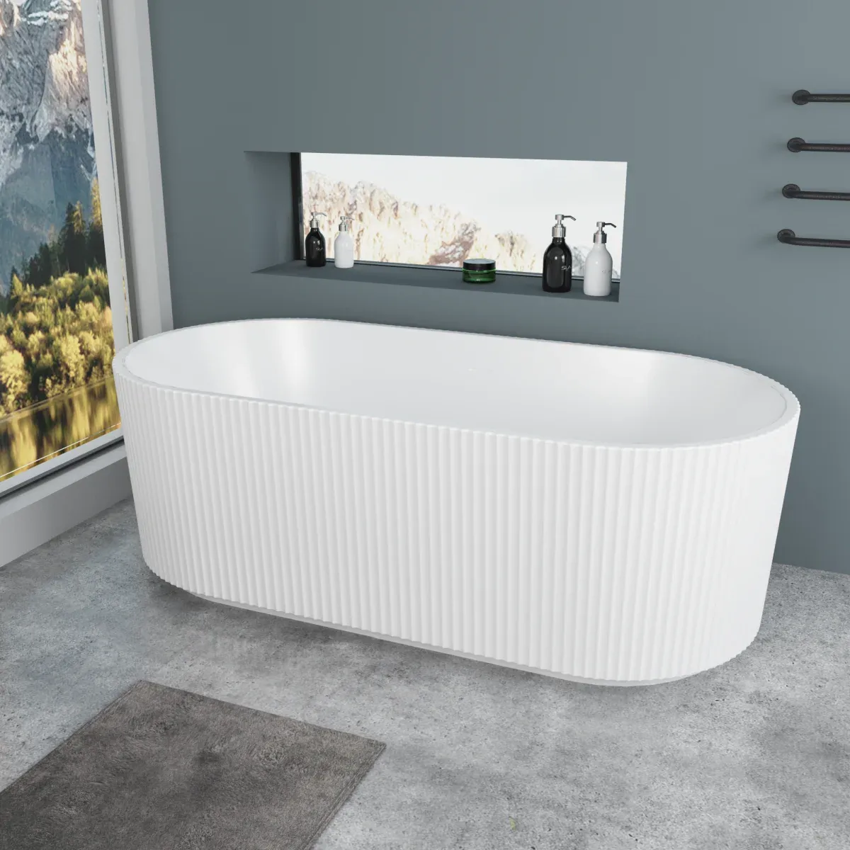 Produkt dla osób ceniących prostotę formy, porywający swoją nienaganną estetyką. Wanna wolnostojąca w prążki 1600 mm zyskuje zwolenników dzięki prostej, zachowawczej linii produktu o wyjątkowym ryflowanym kształcie. Klienci, którzy wybrali tą wannę wolnostojącą 160 cm do swojej łazienki cenią ją za oryginalny design oraz świetne wyprofilowanie. Kąpiel w takiej nowoczesnej wannie ma być czystą przyjemnością! Ta owalna ryflowana wanna wolnostojąca będzie świetnym elementem zarówno wnętrz klasycznych, stylizowanych na salony kąpielowe retro, jak i tych minimalistycznych, ultranowoczesnych łazienek, wyjętych wprost z najbardziej prestiżowych pism wnętrzarskich. Dodatkowo opcja dowolnego wręcz ustawienia wanny we wnętrzu sprawia, że będzie ona centralnym elementem tego pomieszczenia, bez względu na to, czy zostanie postawiona przy ścianie czy centralnie, na środku.