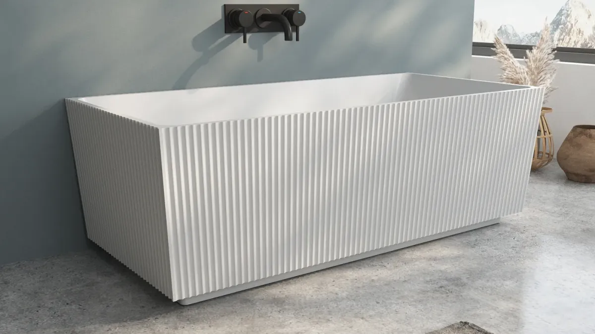 Produkt dla osób ceniących prostotę formy, porywający swoją nienaganną estetyką. Ten model wanny MESOLA zyskuje zwolenników dzięki wyraźnej, ostrej linii produktu. Klienci, którzy wybrali tę wannę wolnostojącą do swojej łazienki, cenią ją za oryginalny design oraz świetne wyprofilowanie. Kąpiel w takiej wannie to czysta przyjemność! To wanna wolnostojąca ryflowana MESOLA 170 cm, której charakterystyczne pionowe prążki nadają bryle wyjątkowej lekkości i elegancji. Subtelne ryflowanie podkreśla nowoczesny styl, a jednocześnie nawiązuje do modnych aranżacji w stylu retro i art déco. Taka wanna wolnostojąca w prążki stanowi wyrazisty akcent dekoracyjny i sprawia, że łazienka nabiera luksusowego charakteru.